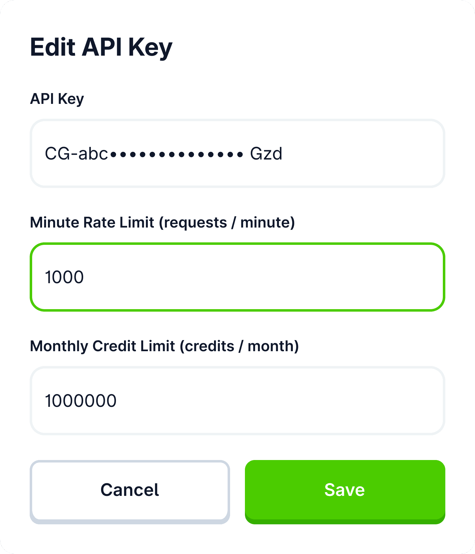 Set custom monthly credit limits per API key, including hard limits